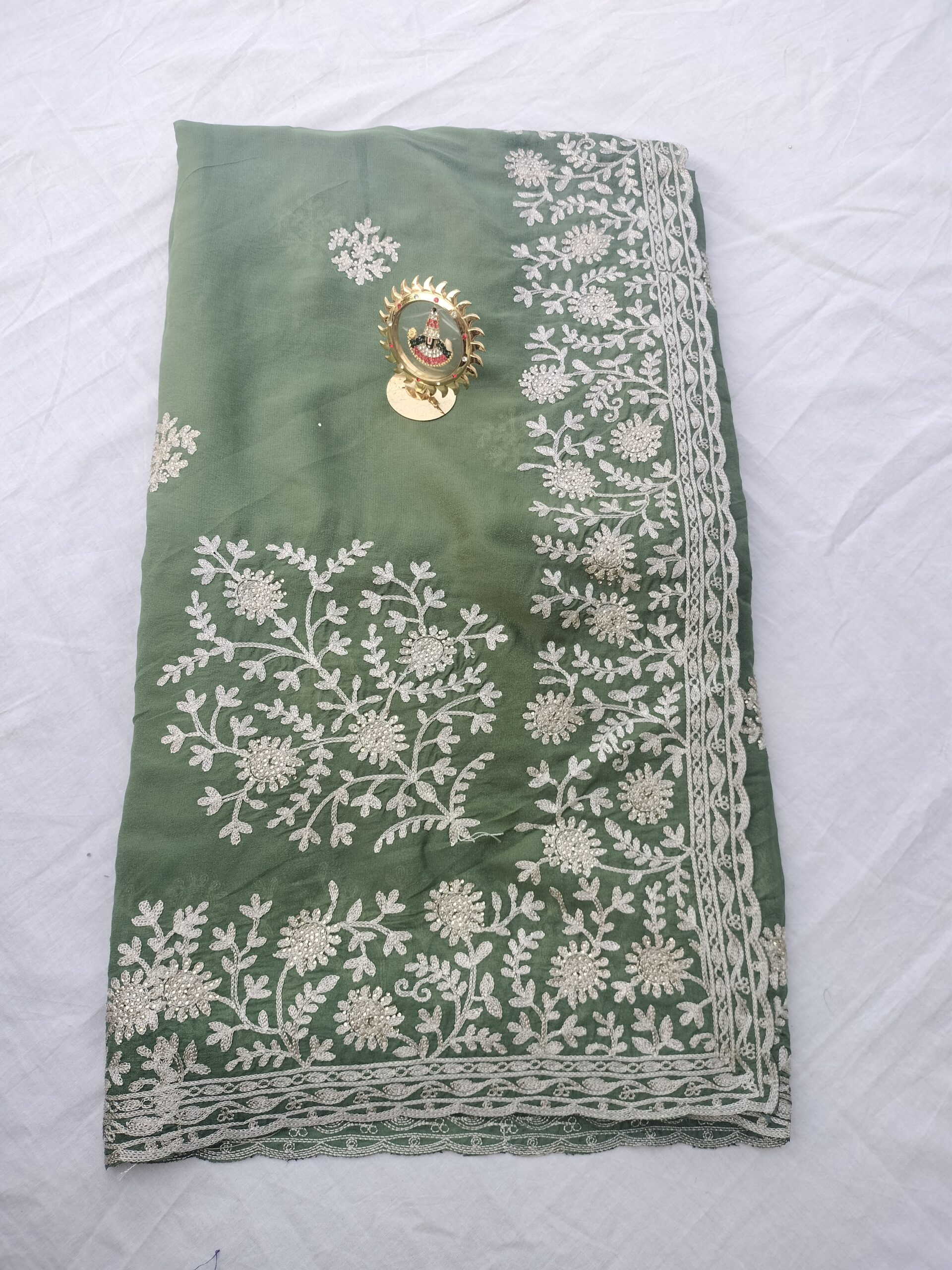 • Fabric Quality: మెత్తని జార్జెట్ వస్త్రం (Soft Georgette Fabric). ఇది చాలా తేలికగా ఉండి, కట్టుకోవడానికి ఎంతో సౌకర్యవంతంగా ఉంటుంది.