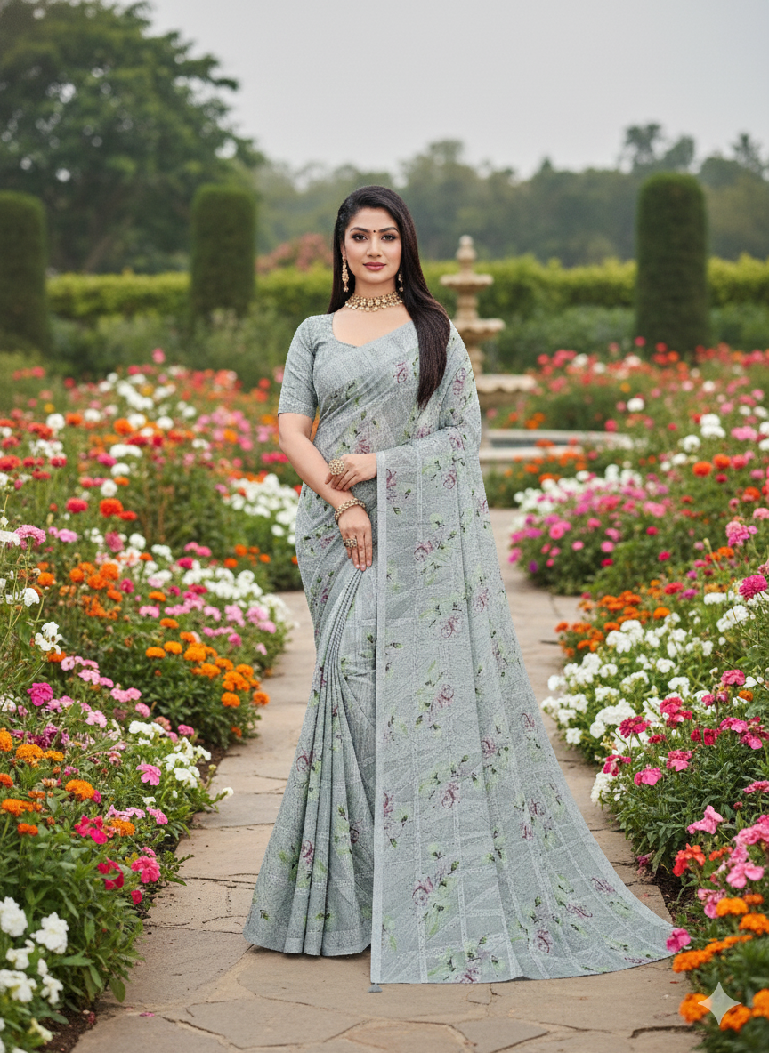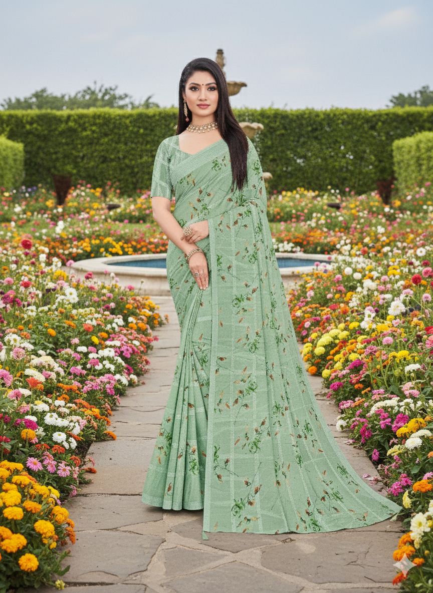 Chiffon Saree with Mirror Scallop Border – ₹499 | మిర్రర్ వర్క్ బోర్డర్ చీరలు